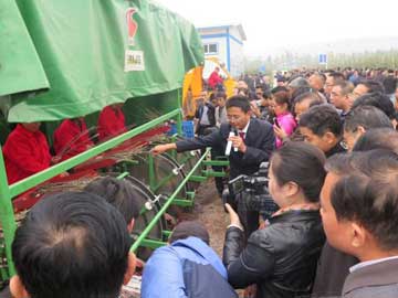 10月10日,全国农机推广站长会在千阳县隆重召开,国家农业部农机化司司长李伟国、副司长李安宁、农机推广总站站长刘恒新、陕西省农机局党委书记何存贵等领导出席会议。宝鸡华圣公司副总经理在会上介绍了千阳县基地的发展情况,包括公司从意大利、荷兰引进的苗木种植机、起苗机、锯末覆盖机、锯末清理机、果园弥雾机、混药机、割草机、果园多功能操作平台等30余台先进机械设备,其中20余台设备为国内首次引进。 会后,各级领导、来宾及媒体记者莅临华圣苗圃基地,参观了公司现场展示的现代化果园、苗圃设备,并观看了苗木种植机、臂展式打药机以及果园多功能操作品台的现场演示情况,参会领导对公司果园机械化应用和推广工作取得成绩给予充分认可。 会上,公司展示供来宾品尝的魔笛苹果受到热烈追捧,前来品尝的领导、媒体记者络绎不绝,对苹果的口感和品质称赞有加。 宝鸡华圣,以先进的国际化机械设备,标准的机械化作业流程,让在场来宾惊叹!以先身之躯,引领中国农机改革之潮流,带领中国广大农户创出一条新的道路!