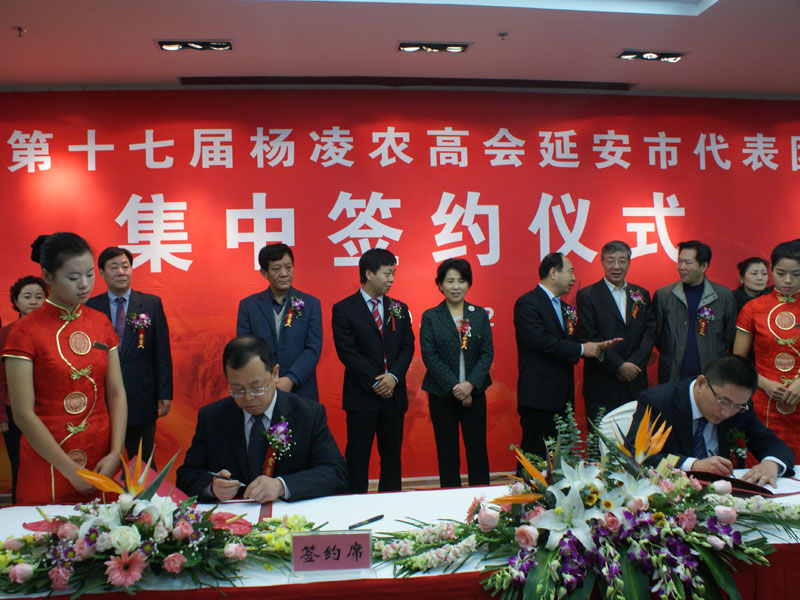 11月2日上午,陕西华圣企业(集团)股份有限公司集团总经理王魁、华圣果业总经理曹继华、尚大伟、彭小强一行在第十七届杨凌农高会杨凌国际会展中心二楼西会议室参加了集中签约仪式。出席签约仪式的有延安市人民政府副市长彭祖佑、陕西省科技厅巡视员杜克飞,延安市科学技术局局长张宇。华圣果业总经理曹继华代表华圣集团和延安市科学技术局局长张宇先生关于《苹果产业技术服务合作》项目进行了签约。 为了推动延安苹果产业发展,促进农民增收和企业增效,延安市科学技术局与陕西华圣企业(集团)股份有限公司果业公司签订了“关于建立苹果产业技术服务合作”协议。本协议依托龙头企业带动,发挥基地、资源、市场、技术综合优势,开展以技术服务为主的产供销一条龙服务,达到提高果农技术水平,增强果农商品意识,为果农搭建产销全方位服务平台,助推延安苹果进军国际高端市场。