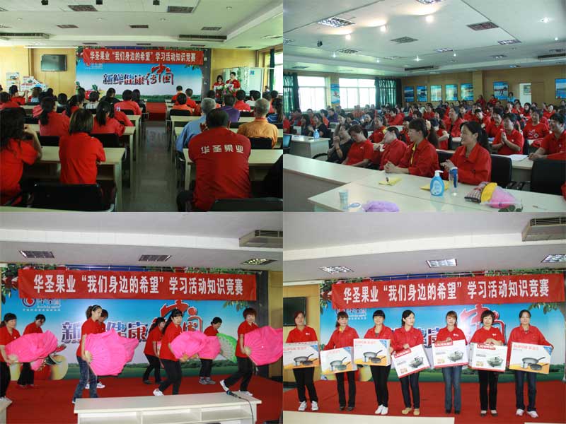 9月28日下午在果业公司多功能培训中心举行了“我们身边的希望”学习活动知识竞赛和颁奖活动,各部门全员参加,本次竞赛激烈纷呈,员工们抢答踊跃,回答正确者得到了精美的礼品。活动中间还有来自果业工厂分选车间和行政后勤员工的即兴表演和精彩街舞,幽默的表演和优美的舞蹈给严肃紧张的比赛现场增加了欢乐气氛。竞赛活动结束后,部门经理和工会委员代表为本次知识问卷获奖人员颁发了奖品,获奖人员名单如下: