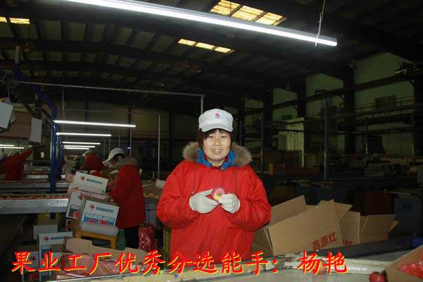 她是一名车间一线分选工,工作中,始终以公司利益为重,不浪费一个标签,一枚发泡网。对自己负责区域每日总是清扫的干净整洁,分选中,严格按照质量标准进行分选,认真挑选每个苹果,工作产量总是名列前茅。2013年的质量产量考核评比,总分名列分选车间第二名。在果季期间站台检验中,作为一名抽样员,时刻保持一颗公正的心,对抽样每车苹果,都严格按照标准进行操作,他认真踏实的工作作风是我们学习的榜样。