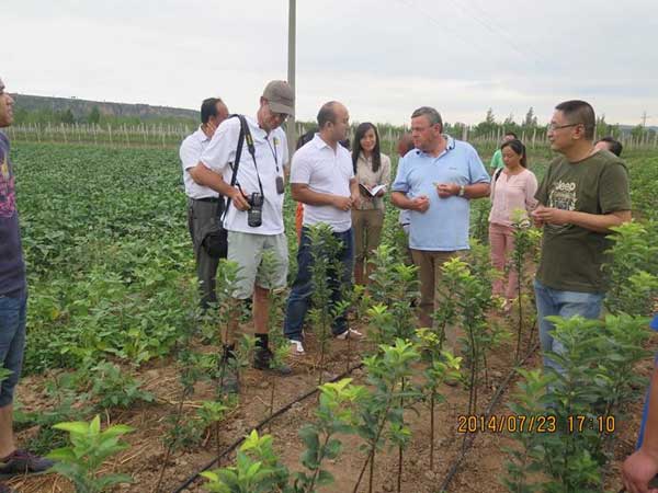 7月23-24日,欧洲最大的拥有权威资质的规划设计承包商以及苗木供应商之一,荷兰Clootwijck Nurseries公司首席执行官Jan Hak先生及荷兰瓦格宁根大学Frank Mass教授一行5人到宝鸡华圣果业有限责任公司千阳生产基地进行交流指导。