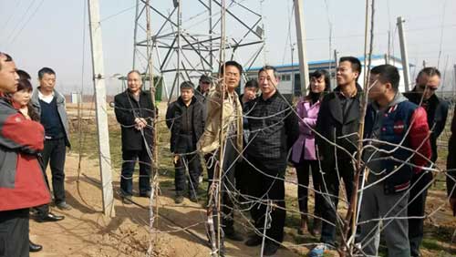 2015年3月8日,西安市各区县果业技术推广部门负责人50多人在张创新主任的带领下参观了宝鸡华圣千阳基地。旨在学习了解先进的果园管理技术和机械化生产模式。基地王晓伟经理介绍了华圣公司发展情况及千阳基地建设规划,对基地大苗示范园、种苗培育圃以及水肥一体化系统作了介绍,并演示了进口机械操作。