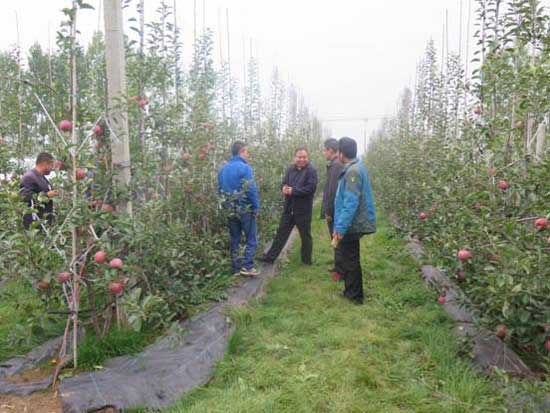 2016年10月16日延安市副市长张宏莅临宝鸡华圣公司苗木繁育中心苹果种植基地参观指导。张市长对华圣宝鸡公司繁育的苹果大苗及引进试种的品种给予充分肯定,张市长就延安发展自根砧矮化苹果同公司总经理曹继华,副总经理史继东,西北农林科技大学李丙智教授等人进行了充分的交流。
