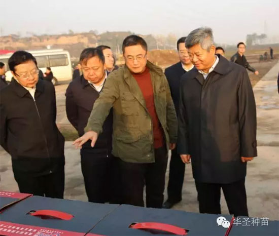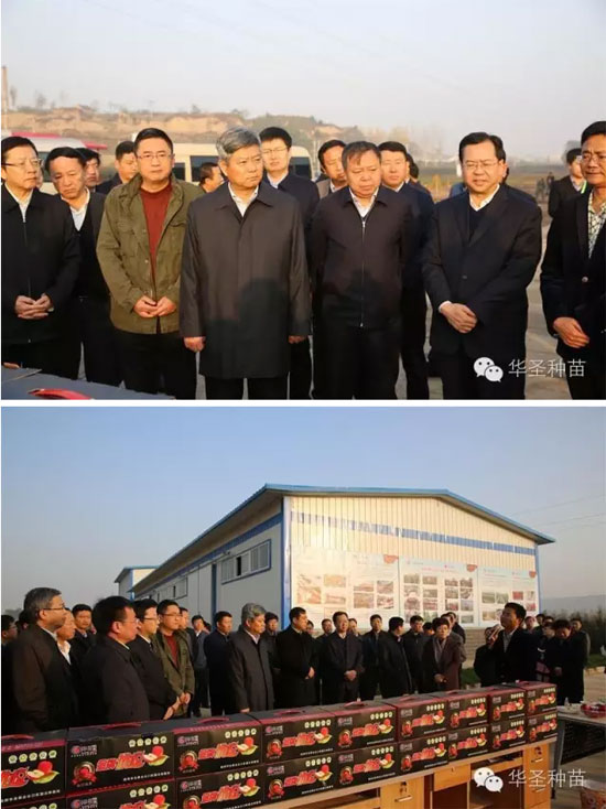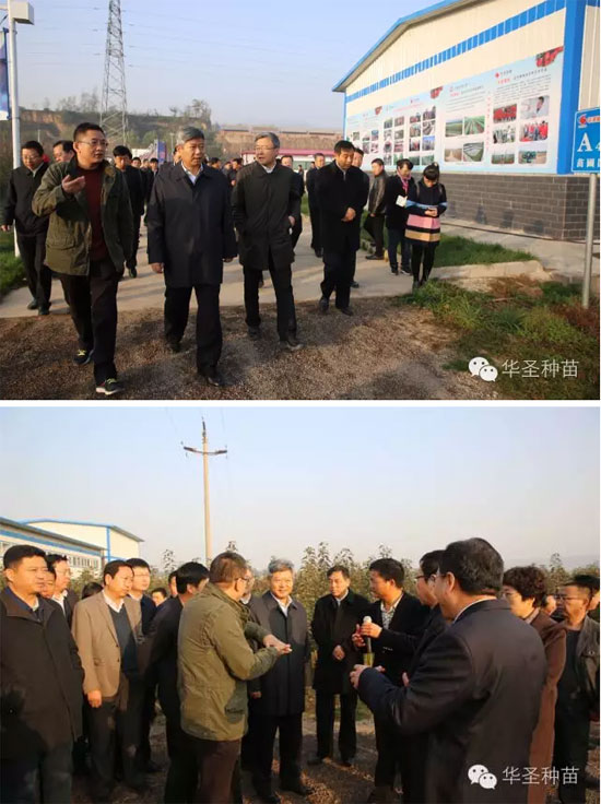 11月13日,省委常委、延安市委书记徐新荣一行60余人在宝鸡市副市长王宁刚的陪同下到华圣千阳苗木繁育基地参观调研。