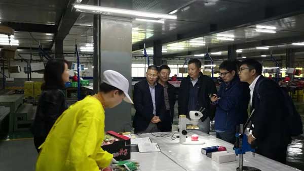 在公司执行总经理彭小强、果业工厂总经理李蕾陪同下,喻总经理、范副局长一行参观了气调仓储情况、工厂标准化生产流程,随后在华圣果业展厅总经理彭小强详细介绍了华圣果业的发展状况、规划以及全产业链种植、生产、销售模式。